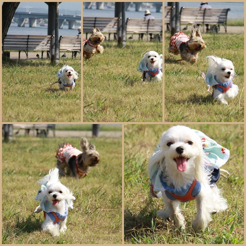 後ろから 、、なんか リロちゃんも 走らなきゃいけないみたいに