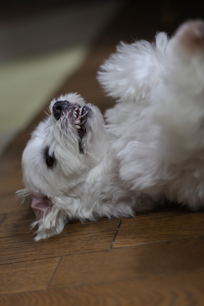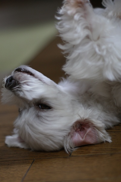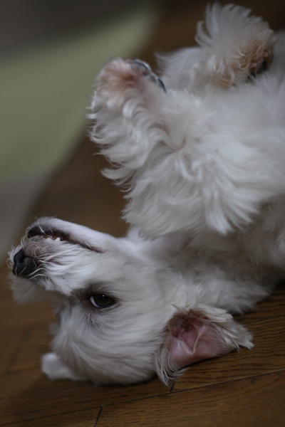 しろ・小太郎が 尻尾をふって 喜んでる姿。