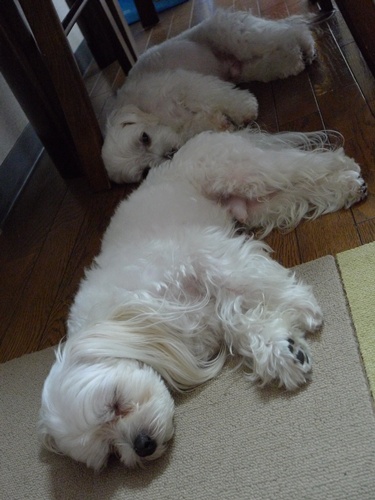 涼しくなって 散歩で いっぱい遊んで 疲れたのか、、