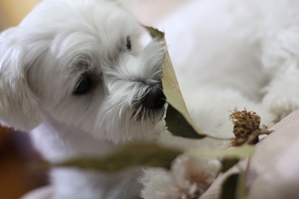 ↓ さぁ、、、しろ、、、小太郎が 葉っぱがついてるのが